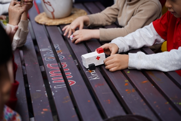 Trẻ không chỉ lắp ráp, vẽ màu mà còn được giải thích nguyên lý khoa học, công nghệ và nghệ thuật gắn liền với từng sản phẩm.